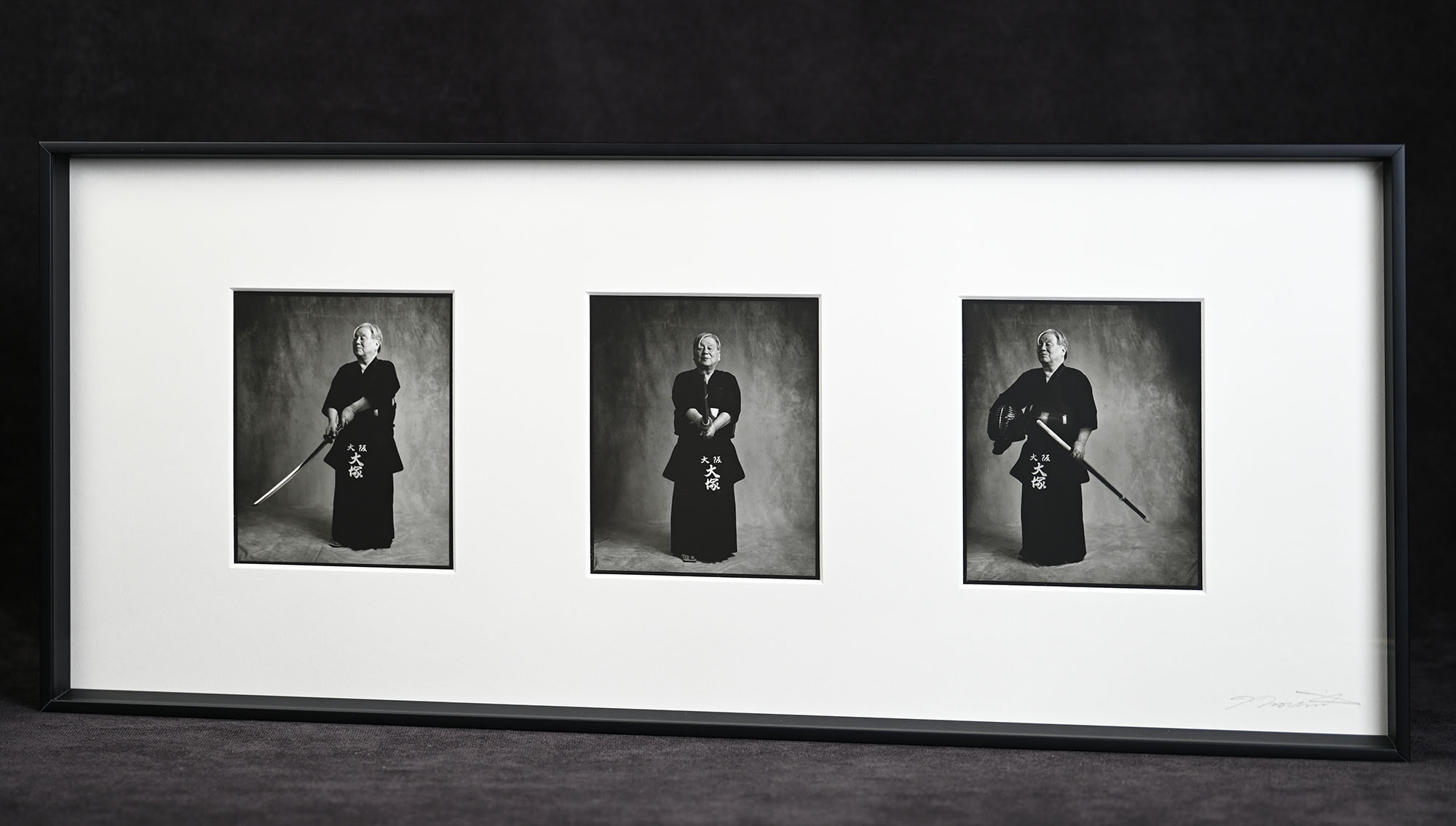 美山フォトスタジオでは、中判カメラ(通常のフィルムよりも大きネガフィルムを用いるカメラ)を使って、モノクロネガ1本(10カット)を撮影します。ネガを、私たちの手で暗室にて現像したのち、1カットを選びだし、手焼きでゼラチンシルバープリントを作ります。印画紙には廃盤の独特なバライタ紙を使い、セピア色がかったレトロ調のミュージアムクオリティのプリントに仕上げます。100年以上色褪せることはありません。デジタル写真が超えることのできない、ネガフィルムの質感をお楽しみ頂けます。